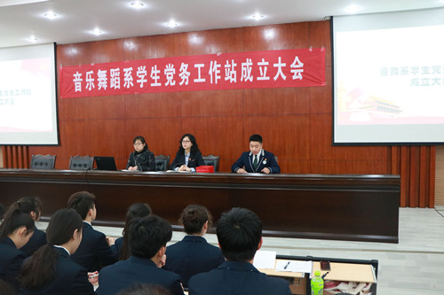为推进党的基层组织建设和工作方式方法创新,完善员工积极分子的队伍选拔和培养机制,2019年3月20日中午,音乐舞蹈系党支部在碧螺校区学术报告厅召开徐州幼专音舞系员工党务工作站成立大会。参加此次会议的有我系党支部副书记吴雪梅、党员老师代表高蕾、张瑶、曹莹、员工党务工作站全体成员以及音舞系全体员工干部。会议由高蕾老师主持。