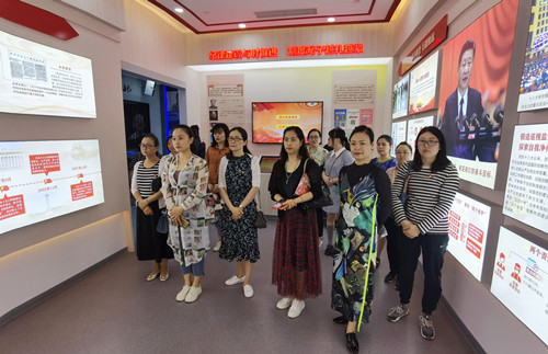 徐州经济开发区廉政教育馆位于经开区科技大厦一楼,该馆展陈内容以“不忘初心、牢记使命”为教育主题,共设置序厅、旗帜篇、警示篇、践行篇和尾厅五个板块。展馆以“图文声像”并茂的形式,配之以声、光、电等设备,实行多维模式,全方位营造了廉洁教育氛围。在讲解员的引领下,党员教师们开启了廉洁教育之旅。通过观看关于反腐倡廉重要论述的原声视频、聆听典型违纪案例现场解读、重温入党誓词等环节,使大家接受了一次深刻的廉政警示教育。