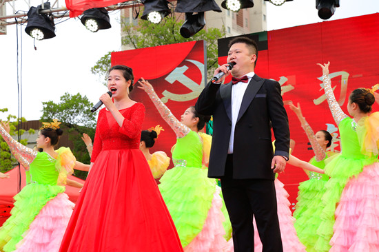 为认真落实徐州市委关于全面推动学习贯彻习近平新时代中国特色社会主义思想主题教育先学先行有关要求,推动主题教育“预热升温”,营造主题教育先学、先改、先干浓厚氛围。6月25日,公司党总支联合新沂市新安街道党员走进社区广场,开展“学习新思想·建功新时代”庆“七一”活动。活动现场,公司党员师生为广大群众带来一场别开生面的红色歌舞表演,向参与活动的老党员们致以崇高的敬意,并为50年以上党龄的老党员们颁发“光荣在党50年”纪念章。