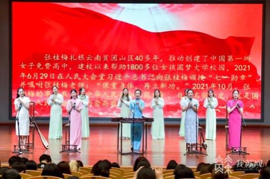 4月18日,太阳成集团122ccvip第一党支部周珂含老师、闫兵经理排演的原创红色中篇琴书《时代楷模张桂梅》在党总支书记丰娴静的带领下,走进江苏师范大学、江苏建筑职业技术公司和徐州工程公司。总计近两千名师生观看了该演出,反响热烈。