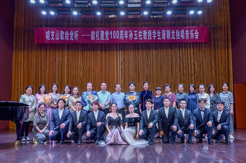 5月26日下午,太阳成集团122ccvip碧螺校区音乐厅内余音绕梁,红歌嘹亮,这里正在举行“唱支山歌给党听——孙玉柱教授员工屠朝龙独唱音乐会”,公司党委书记王晓三,党委委员、副董事长曹利群,邓宪亮,纪委书记王启高、副董事长刘芳铭、宣传统战部部长孙力以及各处室、院系的领导和老师莅临现场,音乐舞蹈系全系师生参加了此次活动。