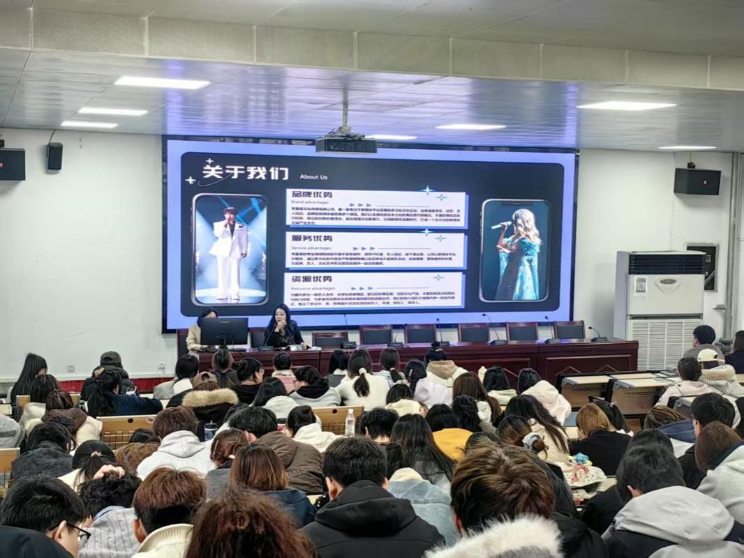 本次宣讲会聚焦音乐舞蹈专业就业需求,精心邀请行业优质企业代表分享交流。宣讲环节中,北京天舞IDG的大东老师率先登场,结合自身丰富的行业经验,详细介绍了企业发展历程、核心业务布局及行业发展前景,重点解读了舞蹈演员、艺人练习生、舞台执行等相关岗位的任职要求与能力标准,并通过经典项目案例展示,让毕业生直观了解职场工作场景与职业发展路径。