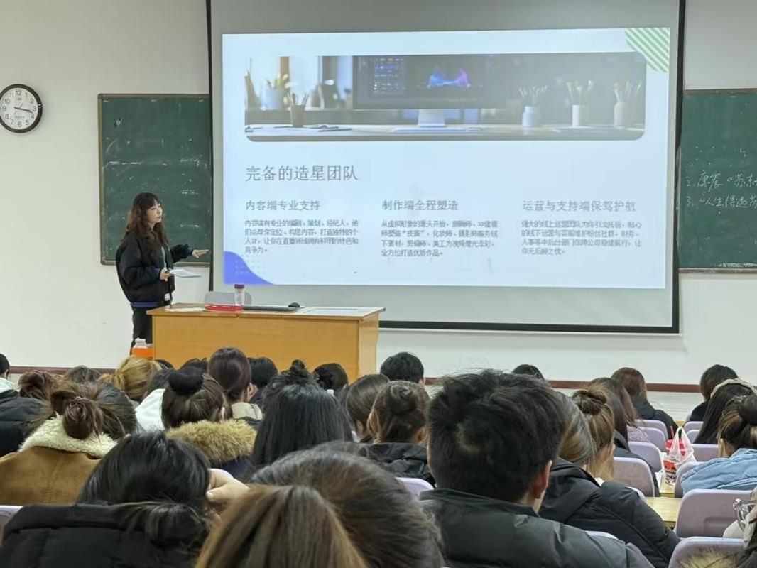 作为数字内容领域的新锐力量,青初传媒于2023年在B站起步,聚焦音频虚拟内容创作与视频网红孵化两大核心业务,始终秉持“专业、高品质、可持续”的发展理念,致力于构建创作者全周期成长生态。宣讲中,企业负责人重点解读了其“专业运营+技术赋能”的双轮驱动核心竞争力:运营团队可为创作者提供内容定位、粉丝运营、商业变现等全链条定制化方案,同时依托高清拍摄设备与智能剪辑系统,从硬件到软件全方位保障创作品质;为打破线上孵化的场景局限,公司更是斥巨资打造了3000平方米的专业直播基地,内设300余间配音直播间与100余间视频直播间,配备前沿影音设备与多元化场景布景,有效降低了创作者的入门门槛。