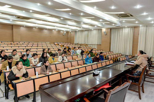 11月27日,音乐舞蹈系党支部书记陈繁为支部党员教师上了题为“不忘共产党人初心、勇担教育工作者使命”的党课。陈书记从“共产党人的初心和使命”“教育工作者的初心和使命”“学习先进、永葆初心”“我的初心故事”四个方面与党员教师进行了互动和交流。