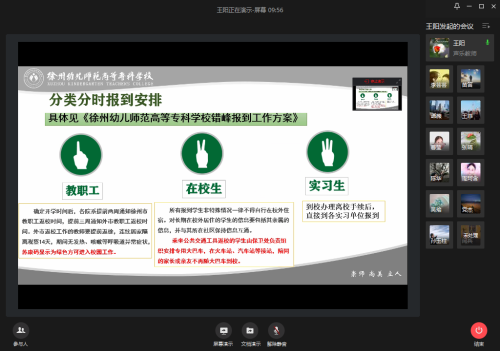 我系声乐、器乐、理论、舞蹈四个教研室认真组织了此次学习活动,各教研室主任从工作体系、开学返校前、返校途中及报道当天、开学返校后四个方面中的要求和注意事项进行了详细的讲解和说明。通过此次活动,全体教师了解并熟悉了疫情防控期间师生返校工作中的流程和要求,为下一步师生返校及公司产品的顺利开展做好准备。