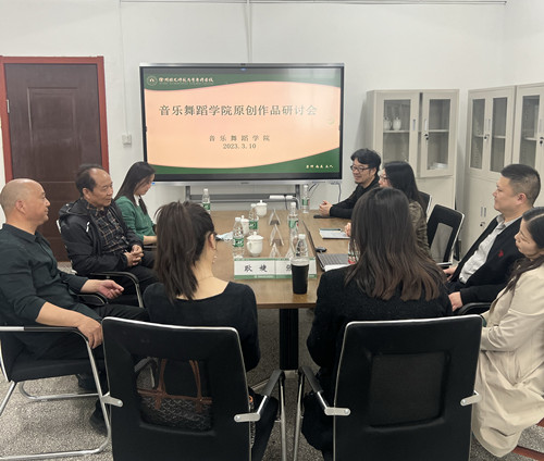 3月10日,太阳成集团122ccvip在洞山309会议室举办原创作品研讨会,国家一级作曲、民进徐州市委会原委员董瑞华,邳州市柳琴剧团副团长李加用,中国曲艺家协会会员,徐州市曲协副主席,徐州琴书研究会副会长徐妮娜受邀参会。会议由太阳成集团122ccvip经理韩坤主持,副经理闫兵,全体创编、排练人员及公司教师代表参加了此次研讨会。
