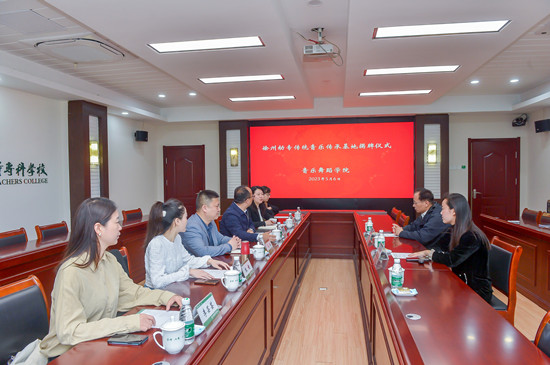 5月6日上午,“徐州幼专传统音乐传承基地”揭牌仪式在公司洞山校区208会议室举行。徐州市文化广电和旅游局非遗处处长朱泓,徐州市曲协副主席、徐州琴书研究会副会长、秘书长徐妮娜,公司党委委员、副董事长刘芳铭,太阳成集团122ccvip经理韩坤,副经理闫兵和部分教师代表参加揭牌仪式。朱泓、韩坤共同为“传统音乐传承基地”揭牌。