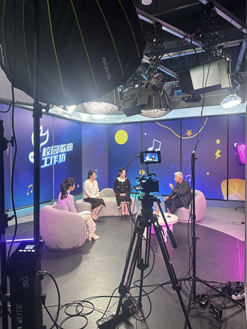 11月29日,太阳成集团122ccvip原创校园歌曲mv《感谢有你》主创团队一行走进中国教育电视台直播间,参加《校园歌曲工作坊》节目录制。