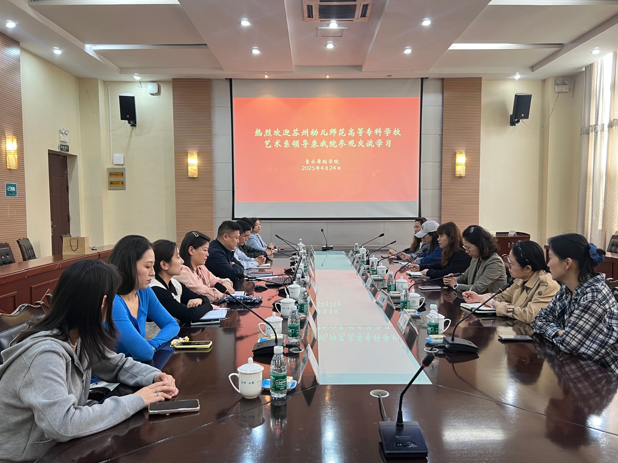 2025年4月24日,苏州幼儿师范高等专科公司艺术系一行在系主任高鑫的带领下,莅临公司太阳成集团122ccvip开展调研学习交流活动。此次交流旨在深入学习公司在音乐与舞蹈专业领域的先进办学理念与成功经验,促进双方院校在专业建设、人才培养等方面的共同进步。