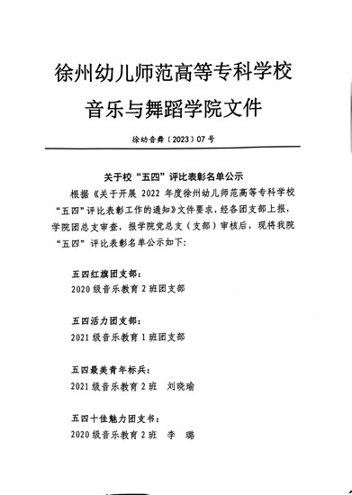 关于校“五四”评比表彰名单公示